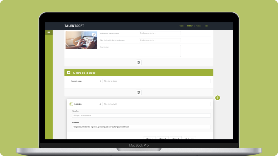 Conception de l'interface et de l'expérience d'un outil pour créer des formations en ligne.